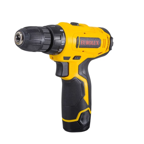 Дрель-шуруповерт данной модели комплектуется быстрозажимным патроном, который позволяет в считанные секунды менять сверло на биту или наоборот. К преимуществам можно отнести и функцию регулировки оборотов путем нажатия на кнопку. Благодаря этому, EUROLUX ДА-12/2Li может использоваться для работы с материалами разной твердости. Крутящий момент - 25/13 Нм. Данный инструмент является базовым и подходит для решения бытовых задач и домашнего использования. Он легко справляется со всеми поставленными задачами. Так как вес шуруповерта составляет всего 960 г, даже при длительном использовании рука не устает.