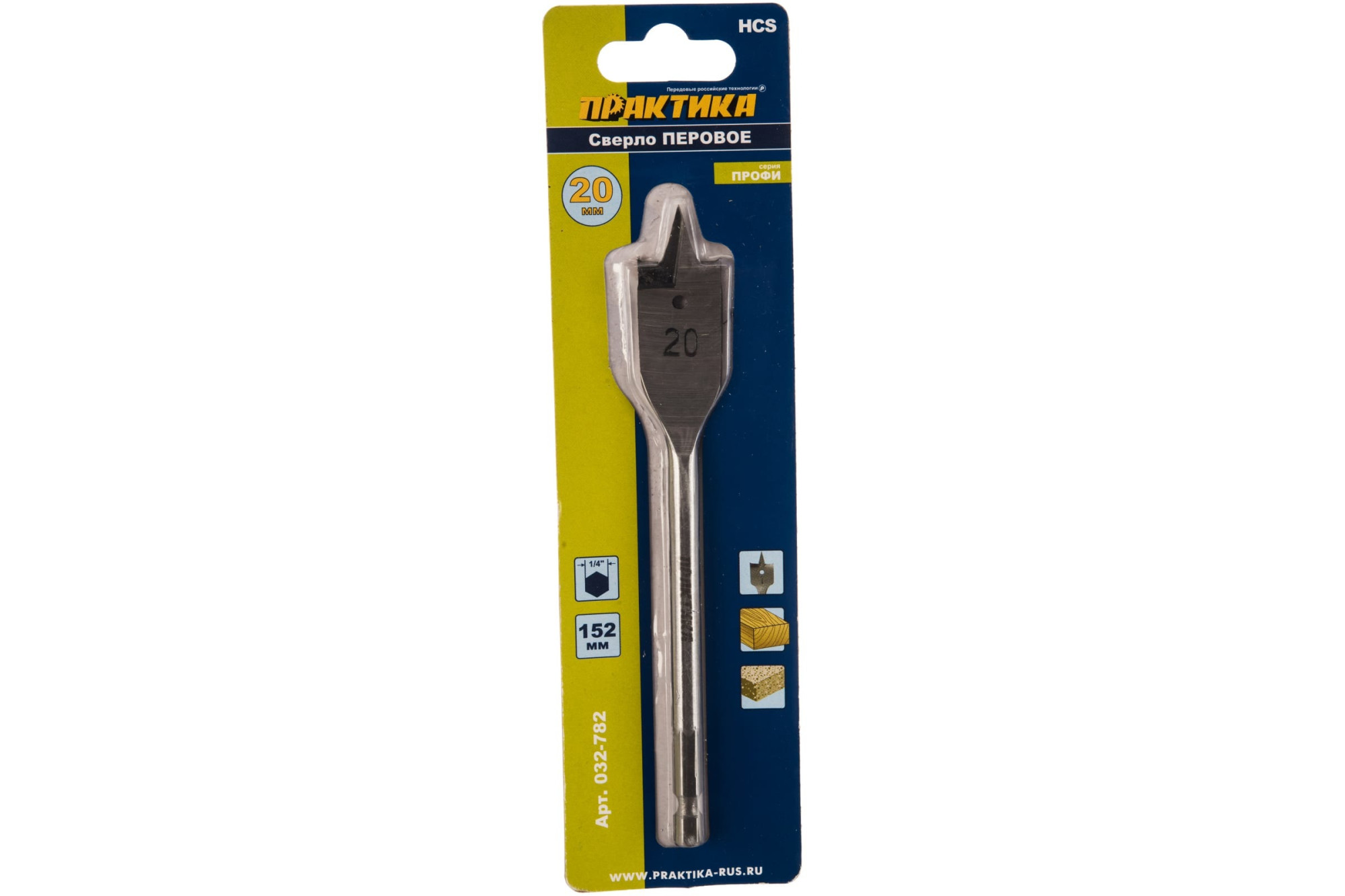 Сверло по дереву перовое 20х152 мм ПРАКТИКА 032-782