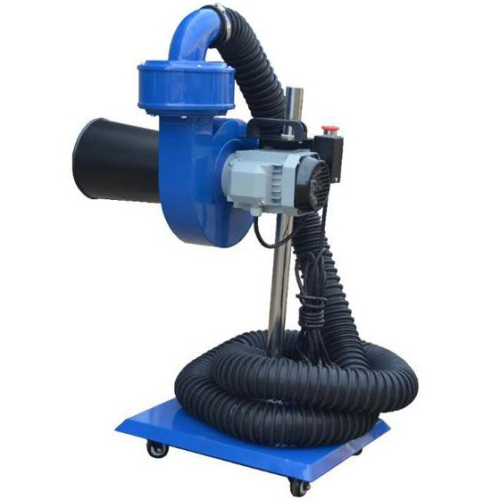 Мобильная установка FLYING FS200776M для сбора и отвода автомобильных выхлопных газов из помещения СТО, автосервиса, гаража. Устройство оборудовано вытяжным вентилятором с газоприемным раструбом и может использоваться как автономно, так и в составе действующей системы удаления газов.