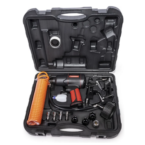 Пистолет для накачивания шин, пневмогайковерт, головки - 17 мм, 19 мм, 21 мм, продувочный пистолет, воздушный спиральный шланг 5 м, фитинг - 5 шт, масленка
