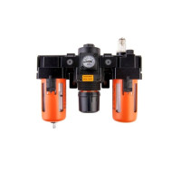 Блок подготовки воздуха WIEDERKRAFT WDK-70230 используется совместно с компрессорным оборудованием и пневмоинтрументом. Фильтр-масло/влагоотделитель применяется для очистки сжатого воздуха от механических частиц, воды и минерального масла. Лубрикатор предназначен для подачи смазывающих материалов и поддержания постоянной концентрации воздух-масло. Имеет возможность регулировки подачи масла. Регулятор давления применяется для контроля и фиксации давления в пневмосистеме. Уровень давления регулируется с помощью вентиля и отображается на встроенном манометре. Скоба-держатель используется при сборке и закреплении блока подготовки воздуха на вертикальной поверхности.