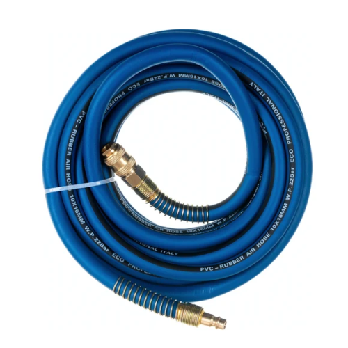 Шланг с быстросъемами 10х16 мм, 10 м, ПВХ ECO AHF-1010 оснащен быстросъемными соединителями и применяется для соединения пневматического инструмента с компрессорами и линиями подачи сжатого воздуха. Шланг оборудован латунными быстросъемными соединениями ПАПА и МАМА.