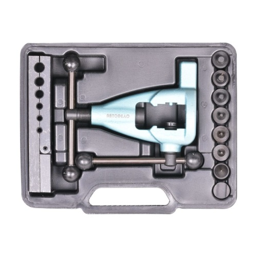 Набор для развальцовки трубок Автоdело двойной конус 4.75-10.0 мм 10 предметов 40435 15896 предназначен для самостоятельного ремонта транспортных средств и применения в быту. За счет расширенного функционала инструмент также используют в центрах технического обслуживания автомобилей. Подходит для работы с трубками диаметром 4,75; 5; 6; 8; 9 и 10 мм.