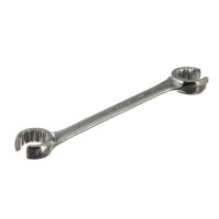 Разрезной ключ является специальной разновидностью ключей накидного типа и представляет собой конструкцию, состоящую из двух накидных профилей самых популярных или соседних размеров, имеющих специальный разрез. В первую очередь они необходимы для работы с гайками, трубопроводом пневматических и гидравлических магистралей, на которые невозможно надеть неразрезной накидной профиль. Из-за особенностей гаек такого типа применение рожкового профиля нежелательно, так как затяжка и отворачивание соединительной резьбы требует настолько большого усилия, что классический рожковый профиль может повредить крепеж.