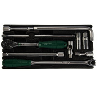 Набор инструментов Hans ложемент 1/2" 10 шт TT-3 используется при ремонте и обслуживании автомобиля. Комплект состоит из инструментов, расположенных на компактном и вместительном ложементе. Рабочие части изделий изготовлены из хромованадиевой стали. Удобные для работы и удержания рукоятки выполнены из пластика. Посадочный квадрат трещотки - 1/2".