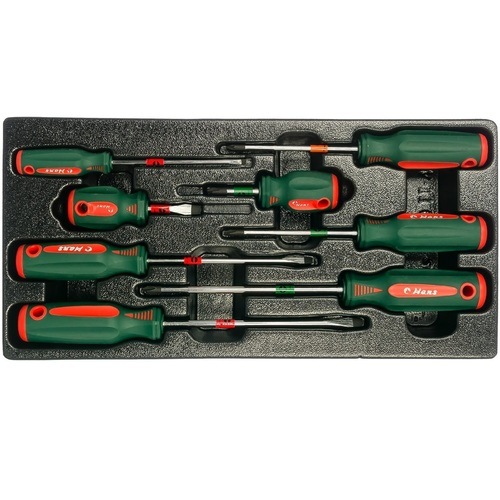 Набор отверток Hans ложемент TT-10 подойдет для винтов с прямым и крестовым шлицем. В наборе отвертки с прочным стальным стержнем и намагниченным наконечником. Рукоятки инструментов выполнены из двухкомпонентного материала. Комплект оснащен ложементом для хранения.