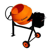 Строительное оборудование для замешивания бетона и других строительных растворов. Объем готового раствора составляет 90 литров за один замес, модель оптимально подходит для небольшой строительной площадки. Чугунный венец работает относительно тихо, не доставляя неудобств во время эксплуатации. Удобный штурвал опрокидывания барабана позволяет дозировано доставлять бетон непосредственно в рабочую зону.